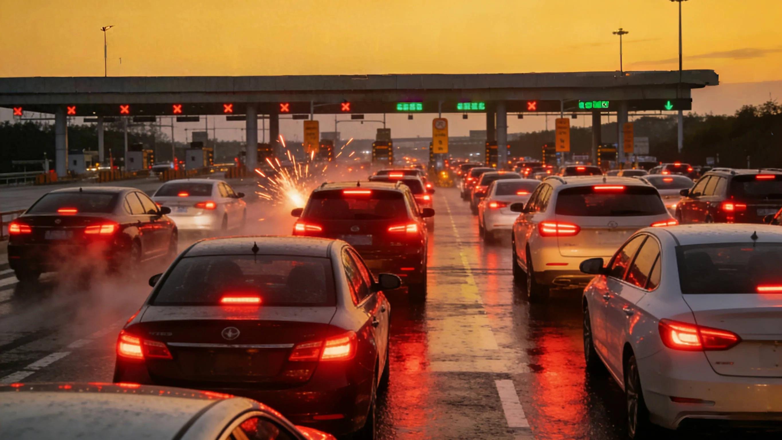 在下午4点这个时刻,于距离免费截止还剩下8小时之际,各大收费站已然进入“读秒模式”。在G4京港澳高速的石家庄收费站这儿,车辆开始了疯狂的相互穿插之行为,其目的仅仅是为了抢在24点整的那一秒钟之前冲过拦杆。有车主甚至让副驾驶提前就手握手机对准时间,从而做好精确卡点之事。