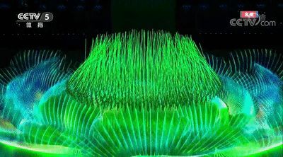 浪涛翻腾着,最终凝结成冰雪天地,此进程运用了大量粒子特效来模拟冰晶形成。运动员入场时走过的“中国门”,取材于全国各地经典传统门窗图案。运动员入场时走过的“中国窗”,也取材于全国各地经典传统门窗图案。脚下的“中国窗”里,滚动展示着中国的大好河山,这是借助数字影像将建筑元素与自然景观做了融合。