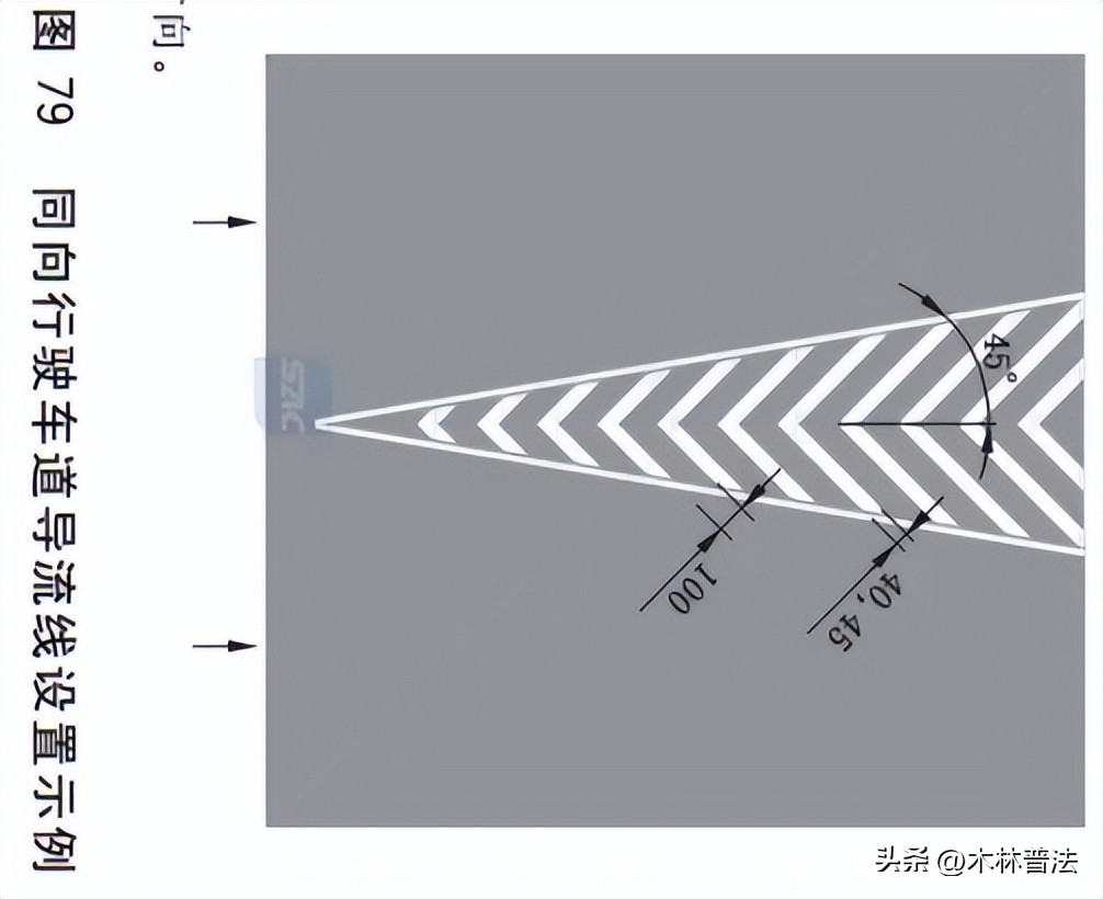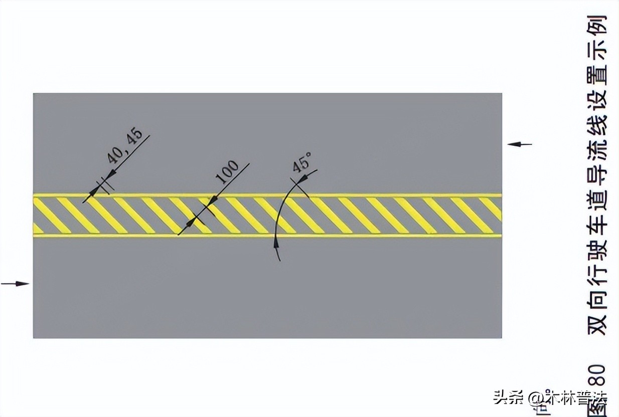 导流线颜色因功能不同,有黄色有白色。它们于复杂路口或是匝道出口出现,用以规范行车轨迹。分隔对向车辆的导流线为黄色,分隔同向车辆的是白色,皆由轮廓线以及内部的V型线或者斜纹线构成,压线或者占用导流线行驶,属于严重的交通违法行为。
