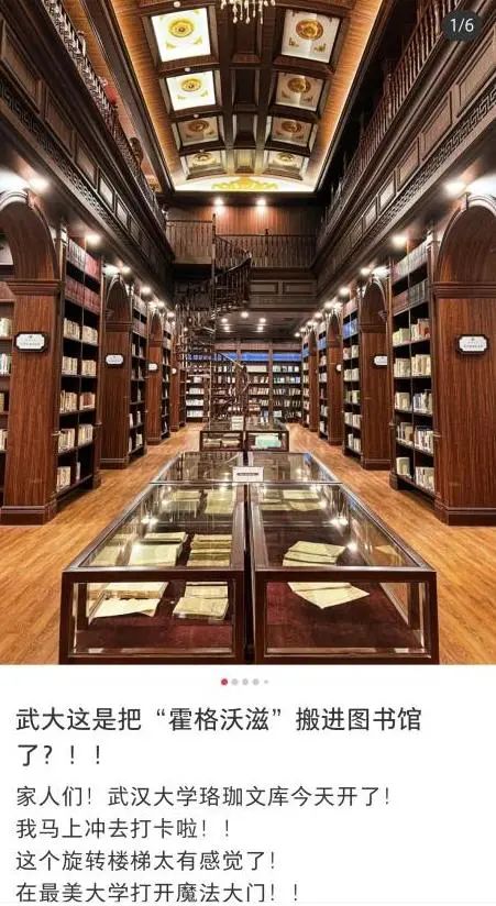 为有着实物般真切特质文物的武汉大学老图书馆馆舍,与周边建筑群一道被归入全国重点文物保护单位范畴。新投入使用的珞珈文库,凭借配置旋梯的缘故,步入其中仿若置身于另一时空,怪不得校友们以戏称方式将其称作“霍格沃兹”。