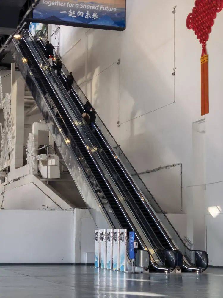 报到的第一天,我前往主媒体中心,让我印象最为深刻的是,一层有那种好似四层高的手扶电梯。制服中心处于二楼,我觉得恭敬不如从命,即便心中发怵然而硬着头皮也必须搭乘电梯上去。当距离二层还剩下最后一米的时候,我快速地奔跑并且一下子冲到了平地上,直到这时我才终于松了一口气。