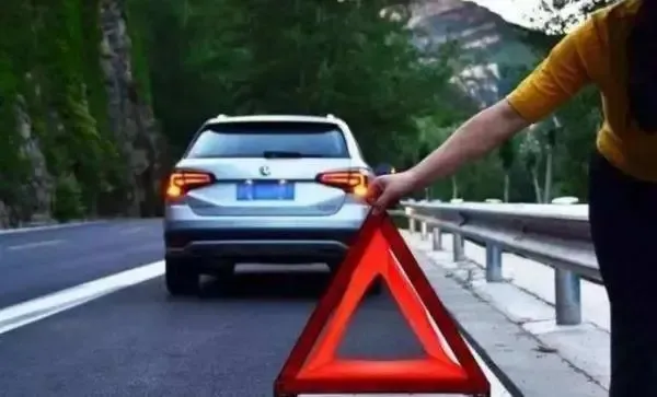 做法正确的是,双手将方向盘紧紧握住,保持直线进行行驶,缓缓地松掉油门,让车速自然而然地降下来。等车速降低到60km/h以下之后,再轻轻地踩下刹车,靠边停车后马上打开双闪,在车后150米的地方放置好三角警示牌,所有人撤离到护栏外面进行报警。